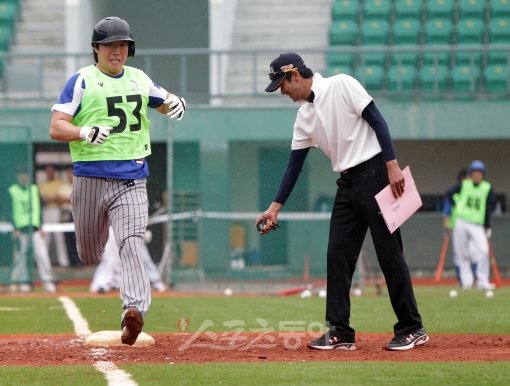 경남 창원시를 연고로 한 프로야구 제9구단인 ‘엔씨소프트 다이노스’의 1차 트라이아웃(사전 테스트)이 28일 마산야구장에서 열렸다. 장호철이 테스트를 받고 있다.