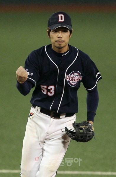 두산 오재원(26·사진)이 28일 목동 넥센전에서 2007년 10월 4일 잠실 한화전 이후 1363일 만에 유격수로 선발 출장했다. 김광수 감독대행은 손시헌이 옆구리 부상으로 빠지고 백업 김재호가 제 역할을 하지 못하자 고영민을 2루수로, 오재원을 유격수로 배치하는 카드를 꺼내들었다. 오재원, 4년만에 유격수 변신에 부담도
