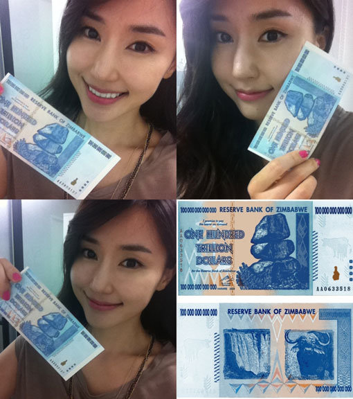 그러나 알고 보니 이는 잠바브웨에서 발행한 100조 달러 지폐로 인플레이션이 심했던 탓에 실제 금액가치는 낮은 것으로 드러났다. 세계 최고의 고액권이긴 하지만 행운을 상징하는 지폐였던 것. 한편 공현주는 2011년 방영 예정인 드라마 ‘슈퍼스타’를 통해 브라운관 복귀를 앞두고 있으며, 최근 여성의류쇼핑몰 ‘스타일주스’를 론칭해 패션 사업에 도전장을 냈다