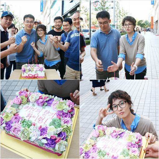 연기자 김선아가 2년 만에 안방극장에 컴백하는 기념으로 팬들에게 대형 꽃 케이크를 선물 받았다.