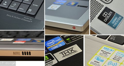 이외에도 도시바의코스미오(Qosmio) 노트북은 세계적 명성의 카 오디오 브랜드인 ‘하만/카돈’(Harman/Kardon)’ 사운드 기술을 내장했으며, 델의 XPS 노트북 시리즈 역시 명품 AV 스피커인 ‘JBL’ 시스템을 내장했다. 아쉽게도 국산 노트북에는 이러한 고급 사운드 기술을 내장한 이렇다 할 제품이 아직 없다. 음질을 고려하는 사용자가 극소수에 불과하다고 판단해서인지, 아직까지 사양이나 성능, 디자인에만 집착하고 있다.