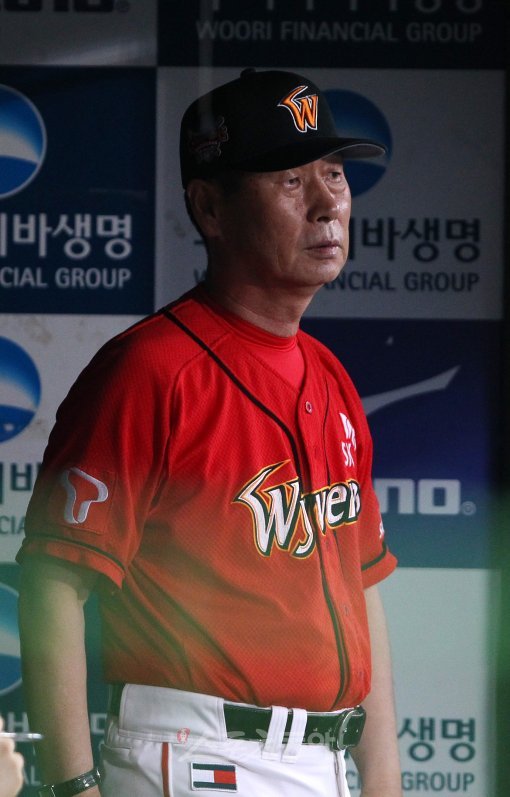 1일 서울 목동야구장에서 프로야구 SK 와이번스와 넥센 히어로즈의 경기가 열렸다. 4이닝 2실점하자 SK 김성근 감독이 진지한 표정으로 경기를 보고 있다.