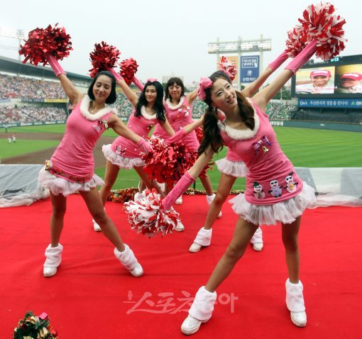 1일 저녁 서울 잠실야구장에서 열린 LG와 두산의 프로야구 경기에서 LG 치어리더들이 썸머 크리스마스를 맞아 산타복장으로 공연을 펼치고 있다.