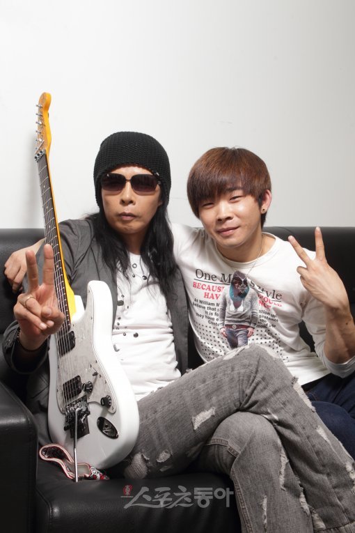 ‘위대한 탄생’ 출신 백청강(오른쪽)과 그의 멘토 김태원. 스포츠동아DB