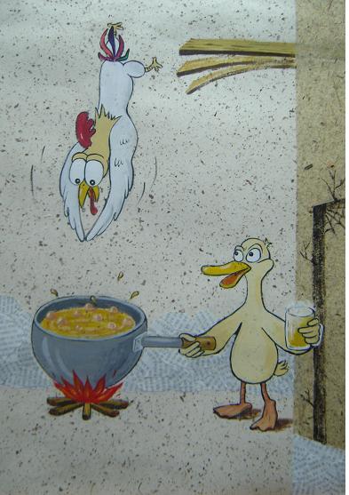 사나이는 ‘닭호프’ 간판 앞에 ‘꼴까’를 덧붙여 ‘꼴까닭호프’ 간판을 내건 뒤, 손님을 끌어들이기 시작하는데 ….