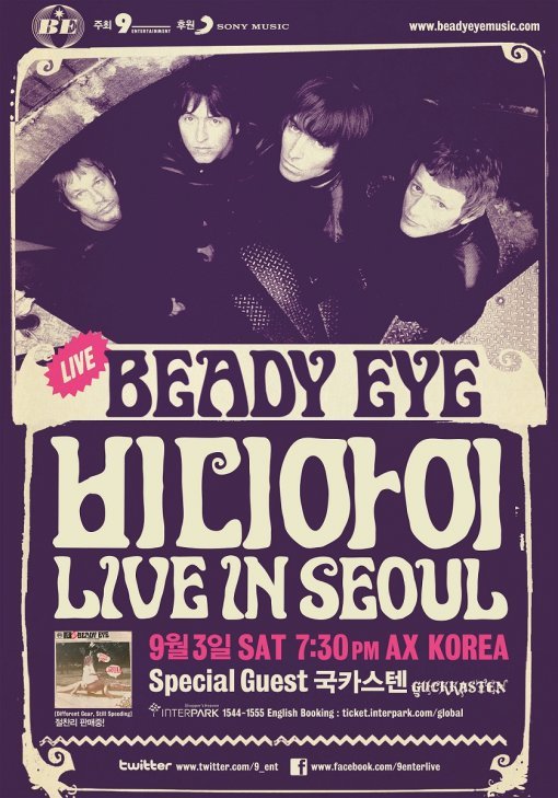 5월 일본 대지진으로 연기됐던 ‘비디 아이’(Beady Eye)의 첫 내한공연이 9월 3일로 확정됐다. 비디 아이는 리암 갤러거와 오아시스 멤버들이 만든 밴드.
