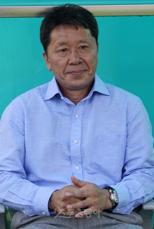 17일 전남 광양전용구장에서 열린 프로축구 2011 18라운드 전남드래곤즈와 대구FC경기에서 전남 정해성 감독이 진지한 표정으로 그라운드를 보고 있다.