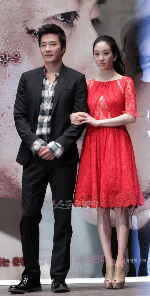 배우 권상우(왼쪽)와 정려원이 21일 오전 11시 서울 롯데시네마 건대점에서 열린 영화 ‘통증’의 제작보고회에서 나란히 포즈를 취하고 있다.