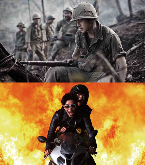 여름 극장가 블록버스터 전쟁에 나선 ‘고지전’과 ‘퀵’ (위부터). 사진제공|쇼박스·CJ E&M