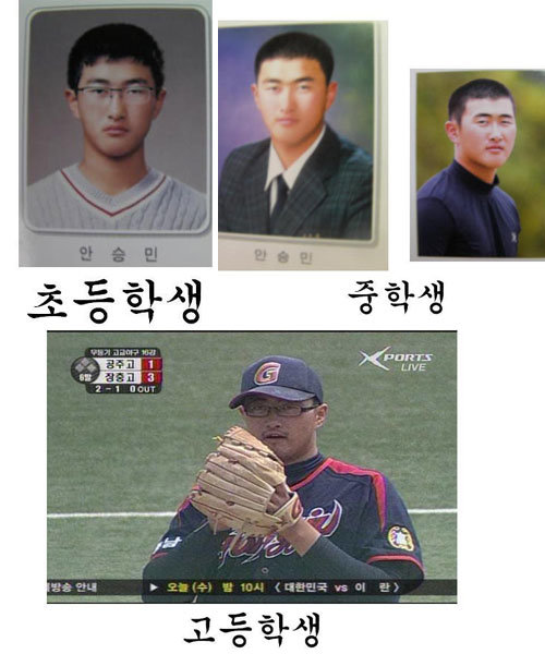 팬들 사이에서도 ‘노안’으로 통하는 안승민 선수의 과거 사진들이 온라인 커뮤니티를 통해 올라오자 누리꾼들의 눈길을 끌고 있는 것.