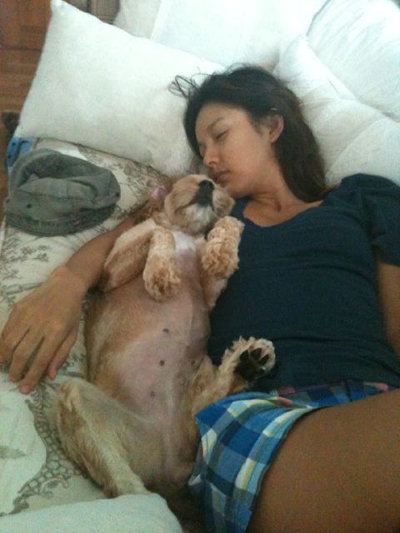 가수 이효리가 반려견 순심이와 다정히 잠자고 있는 모습이 공개됐다.