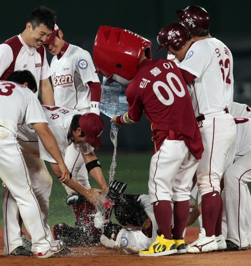 넥센은 전반기 LG와의 최종 3연전을 전부 이겼다. 이제 LG와 넥센은 라이벌이다.19일 경기에서 끝내기 안타를 친 강정호를 둘러싸고 세리머니를 펼치는 넥센 선수들. 목동 | 임진환 기자 ( 트위터 @binyfafa) photolim@donga.com