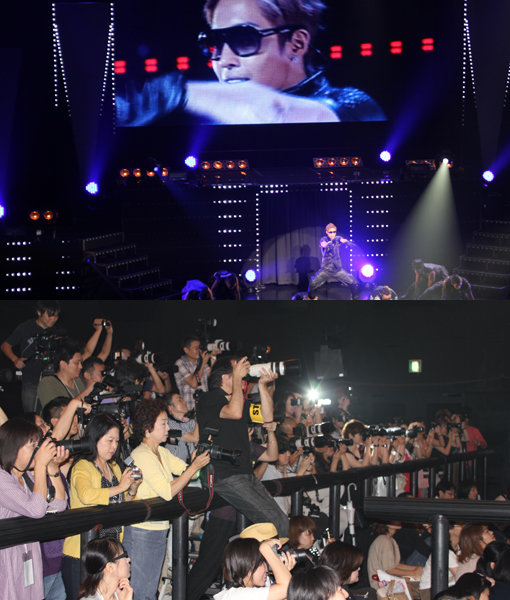 한류스타 김현중이 29일 오후 일본 취재진과 음반사 관계자들의 큰 관심(아래) 속에 도쿄 다이바의 공연장에서 쇼케이스를 펼치고 있다(위). 도쿄(일본)|김원겸 기자 (트위터@ziodadi) gyummy@donga.co
