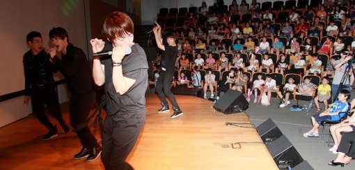 어린이들에게 뮤지션의 꿈을 심어주는 드림콘서트를 연 남성그룹 키노. 사진제공 |KT