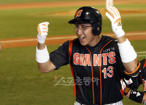 올시즌 만루시 타율 6할(10타수 6안타)을 기록하며 ‘만루의 사나이’로 거듭나고 있는 황재균이 덕아웃 앞에서 홈런의 기쁨을 만끽하고 있다.