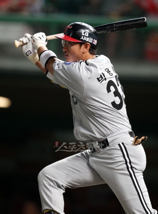 4일 인천 문학야구장에서 열린 프로야구 LG 트윈스와 SK 와이번스의 경기에서 7회초 LG 공격, 무사 무주자 상황에서 LG 박용택이 중전안타를 치고 있다.
