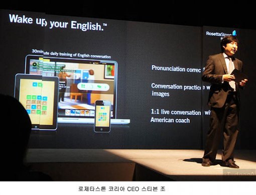 지난 9일 서울 종로 웨스틴조선호텔에서 개최된 로제타스톤 신제품 런칭쇼케이스에서 로제타스톤 코리아 CEO 스티븐 조(Steven cho)는, “깊이 잠들어 있는 잠재적 영어 능력을 깨울 시간이 됐다”며 “로제타스톤의 새로운 영어회화 프로그램인 ‘리플렉스’가 확실한 해답을 제시할 것”이라 강조했다.