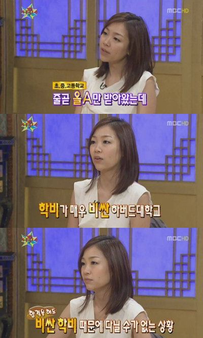 박정현은 10일 MBC '황금어장-무릎팍도사'에 출연해 "초중고시절 올 A를 받았었고 전교 1등이었다. 그러나 비싼 학비 때문에 하버드 대신 UCLA에 지원했다"라고 말했다.
