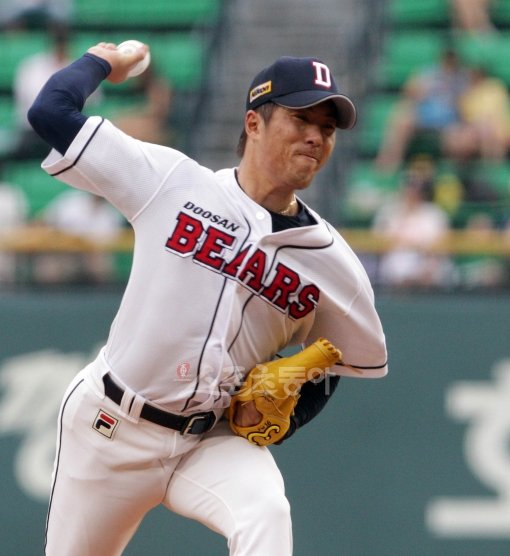 11일 서울 잠실야구장에서 열린 ‘2011 롯데카드 프로야구’ 두산과 SK의 경기에서 두산 선발투수 김승회가 역투하고 있다.