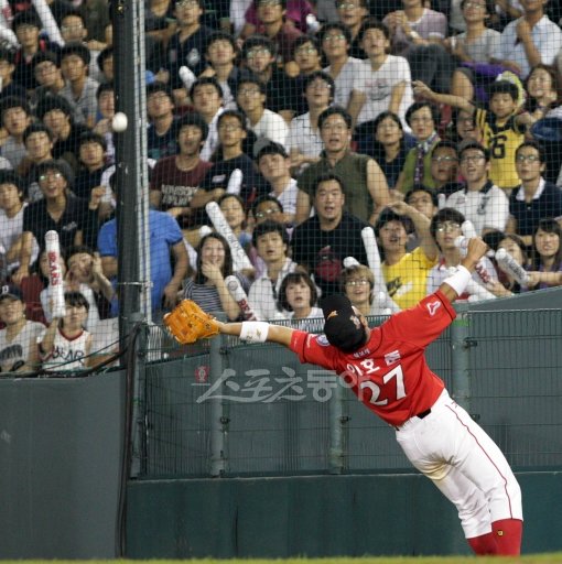 11일 서울 잠실야구장에서 열린 ‘2011 롯데카드 프로야구’ 두산과 SK의 경기에서 6회말 2사 1루 양의지의 파울볼을 SK 1루수 이호준이 놓치고 있다.