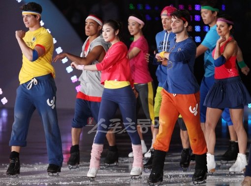 14일 오후 서울 방이동 올림픽공원 체조경기장에서 열린 '삼성 갤럭시★하우젠 올댓스케이트 서머 2011' 아이스쇼에서 피겨퀸 김연아를 비롯한 출연진이 오프닝 공연을 펼치고 있다.