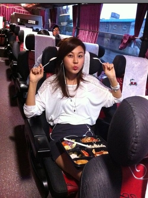 김하늘은 13일 자신의 페이스북에 "빗속을 뚫고 우리는 간다! 기내식도 안 부러운 버스식ㅋ"이라는 글과 함께 인증 사진을 올렸다.