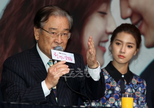 16일 오후 서울 강남구 논현동 학동 헤리츠 컨벤션에서 열린 드라마 '천 번의 입맞춤' 제작발표회에서 배우 이순재가 한예슬 사태에 관련해 언급하고 있다. 이혼여성이 시련을 극복하며 성공하는 패자부할전을 그린 작품 '천 번의 입맞춤'은 오는 20일 첫방송된다.