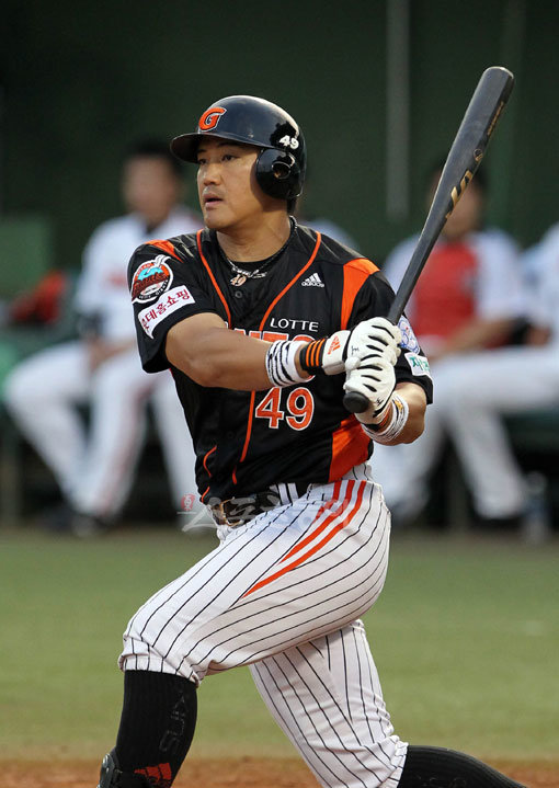롯데가 4년 연속 가을야구로 가는 1차 관문, 2위 KIA∼3위 SK로 이어지는 6연전. 첫 단추는 7-2 승리였다. 그리고 그 중심에는 ‘캡틴’ 홍성흔의 맹타가 있었다. 16일 잠실(LG-두산), 문학(삼성-SK), 목동(한화-넥센) 3경기가 우천으로 순연된 가운데 광주에서 롯데-KIA전이 유일하게 열렸다. 5위 LG와 4위 싸움을 하고 있는 롯데는 홍성흔이 4타수 2안타 3타점으로 맹활약하고 선발 송승준이 7이닝 무실점으로 호투하면서 KIA에 7-2로 이겼다. 이날 승리로 LG와 승차는 3경기가 됐다. 홍성흔은 1회 1사 만루에서 중견수 희생플라이로 결승타점을 올렸고 3회 1사에서 다시 2루타로 출루해 득점을 기록했다. 이어 4-0으로 앞선 7회, 사실상 승부에 마침표를 찍는 2타점 2루타로 승리를 이끌었다. 홍성흔이 7회초 1사 2·3루에서 2타점 우중간 2루타를 날린 뒤 1루로 전력 질주하고 있다.