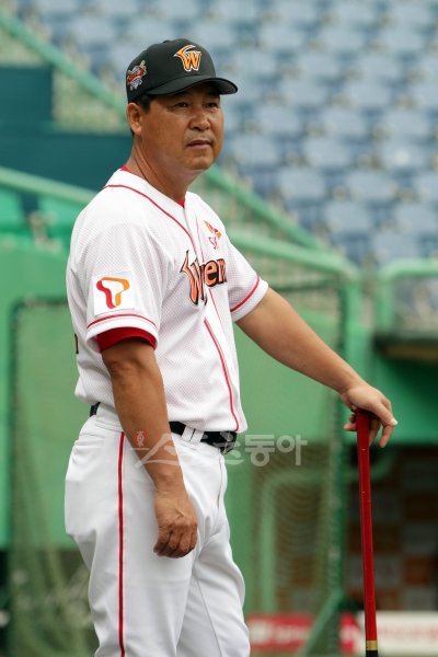SK 이만수 감독대행이 24일 인천 문학구장에서 열리는 두산전을 앞두고 선수들의 훈련을 지켜보고 있다.