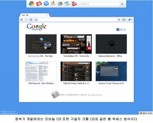 물론 정부의 이런 OS는 처음 등장한 것이 아니다. 이미 구글에서 이와 같은 방식의 크롬 OS를 선보였기 때문이다. 다른 점이 있다면 크롬 OS는 현재 노트북에서만 지원된다는 점이다. 정부가 준비중인 모바일 OS는 스마트폰뿐 아니라 태블릿과 노트북, 스마트 TV 등에서도 사용할 수 있도록 하는 것이 목표이다. 플랫폼의 제한 없이 하나의 웹 접속을 위한 계정만 있다면, 어떤 기기에서건 자신이 작업 중이던 문서를 보거나 수정할 수 있고, 애플리케이션을 실행할 수 있게 되는 것이다.