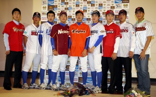 25일 오후 서울 잠실 롯데호텔에서 진행된 2012 프로야구 신인선수 지명회의에서 각 구단 1라운드 1순위 지명 선수들이 포토타임을 갖고 있다.