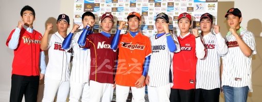 25일 오후 서울 잠실 롯데호텔에서 진행된 2012 프로야구 신인선수 지명회의에서 각 구단 1라운드 1순위 지명 선수들이 포토타임을 갖고 있다.