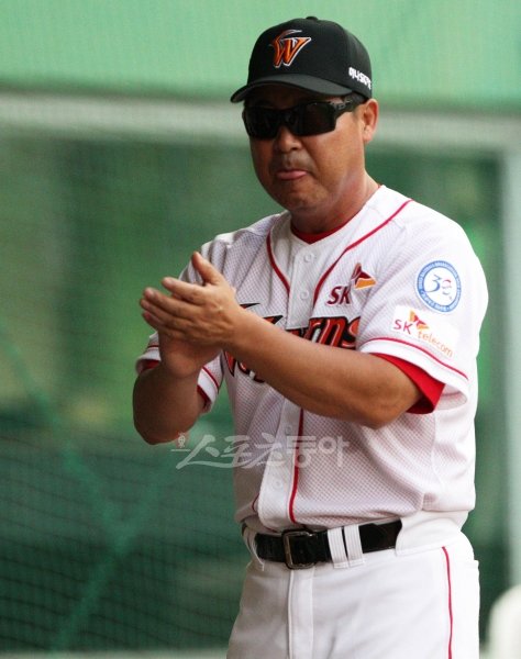 25일 인천 문학야구장에서 열린 ‘2011 롯데카드 프로야구’ SK와 두산의 경기에서 이만수 감독대행이 선수들을 격려하고 있다.