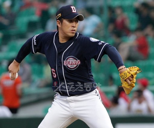 25일 인천 문학야구장에서 열린 ‘2011 롯데카드 프로야구’ SK와 두산의 경기에서 두산 선발투수 김승회가 역투하고 있다.