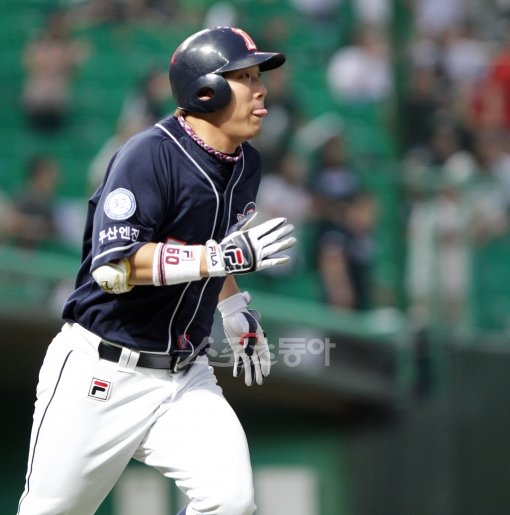 25일 인천 문학야구장에서 열린 ‘2011 롯데카드 프로야구’ SK와 두산의 경기에서 3회초 두산 공격 1사 2, 3루 상황에 김현수가 2타점 적시타를 때려내고 출루하고 있다. 문학 | 임진환 기자(트위터 @binyfafa) photolim@donga.com
