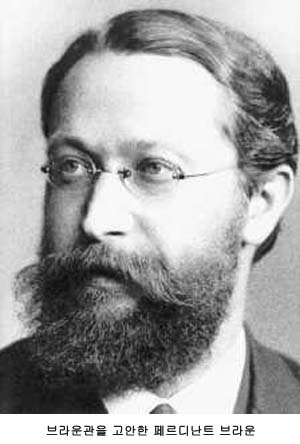 카를 페르디난트 브라운(Karl Ferdinand Braun)이 음극선관(CRT: Cathode Ray Tube), 통칭 ‘브라운관’을 개발하면서 본격적으로 시작되었다. 브라운관은 전자총에서 음극 전자를