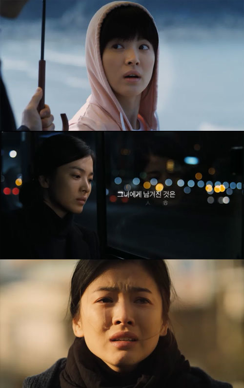 ‘오늘’ 티저 예고편에서 다혜로 분한 송혜교는 연인을 잃은 여인의 심리를 절제된 연기로 표현했다.