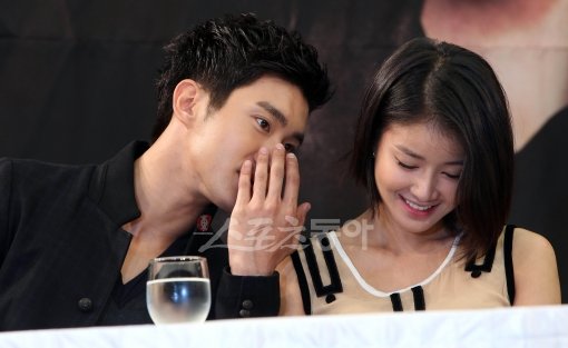 슈주 최시원이 15일 오후 2시 서울 강남구 대치동 컨벤션 디아망에서 열린 KBS 월화드라마 ‘포세이돈’ 제작발표회에서 이시영과 담소를 나누고 있다. ‘포세이돈’은 전미 시청률 1위이자 국내에도 두터운 팬 층을 갖고 있는 인기 미드 NCIS(해군 범죄 수사대)의 한국판 버전으로, 국내 최초로 ‘해양 경찰 미제 사건 수사대’의 리얼 스토리를 담은 수사극으로 19일 첫 방송된다.
