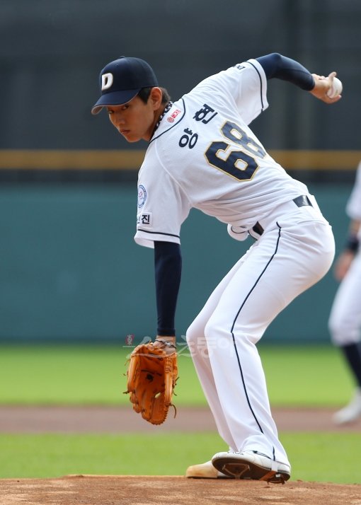 두산 양현이 18일 서울 잠실야구장에서 열린 프로야구 롯데 자이언츠와 두산 베어스의 경기에서 선발로 등판해 역투하고 있다.