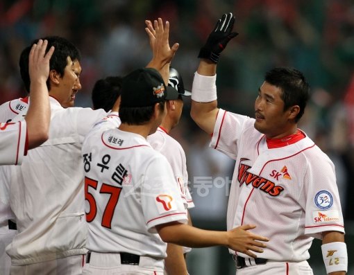 그런데 7경기 1승6패라는 절체절명의 위기 뒤 SK는 5연승 포함해 18일까지 8승2무2패라는 거짓말 같은 반전에 성공했다. 4위에서 플레이오프 직행을 바라보는 2위까지 노려볼 태세다. 김광현 정근우 글로버 박재상 박진만 최정 전병두 김강민 등이 이탈한 상황에서 이뤄진 반격이어서 더 경이롭다. 그 사이에 SK 선수단에 무슨 일이 있었던 것일까?