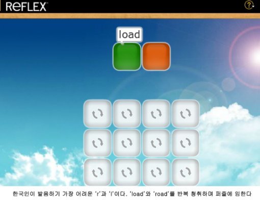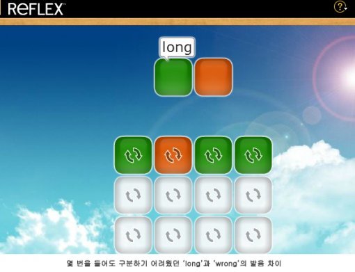 영어에는 우리나라 사람들이 특히 발음하기 어렵고 헛갈리는 발음이 있다. 억지로 혀를 꼬아가며 발음하려 노력하지만, 한글에는 없는 발음이기에 더욱 그러하다. 대표적인 것이 ‘th’, ‘r과l’, ‘p와 f’, ‘g와 z’등이다. 어차피 원어민과 똑같이 발음할 순 없을 테니 가장 비슷하게 흉내 내면 된다. 리플렉스의 첫 번째 학습 단계인 ‘스킬(Skills)’이 바로 그러한 발음 듣기, 말하기 훈련이다.