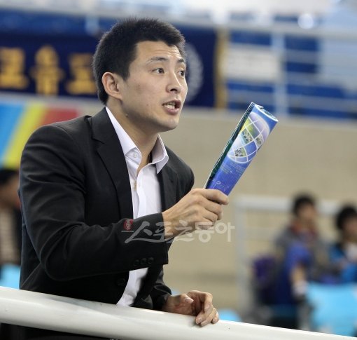 26일 경북 김천실내체육관에서 열린 ‘최민호 올림픽제패기념 2011추계 전국 중·고등학교 유도연맹전’ 고등부 개인전에서 대전체고 코치 자격으로 참석한 방귀만 전 유도국가대표가 선수들에게 작전지시를 하고 있다.