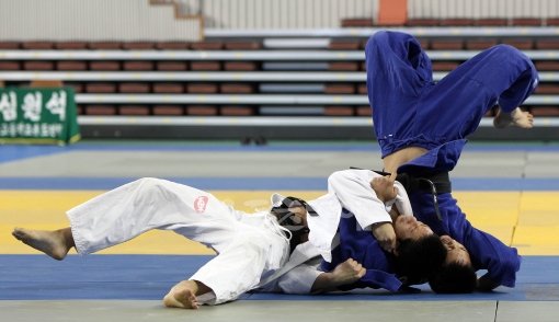 26일 경북 김천실내체육관에서 열린 ‘최민호 올림픽제패기념 2011추계 전국 중·고등학교 유도연맹전’ 고등부 개인전 -73kg 결승경기에서 채성희(백·대전체고)가 윤기원(청·덕원고)를 상대로 한판승을 거두고 있다.