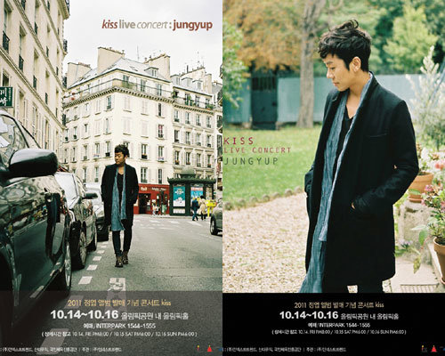 정엽은 30일 트위터를 통해 10월 중순 여는 자신의 ‘KISS’ 콘서트 포스터 사진 2장을 올렸다. 공개한 포스터에는 정엽이 프랑스 파리에서 촬영한 사진이 담겨 감성적인 느낌을 물씬 풍긴다.