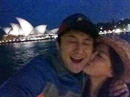 두 사람은 호주 '오페라 하우스'를 배경으로 뽀뽀를 하며 애정을 과시했다.