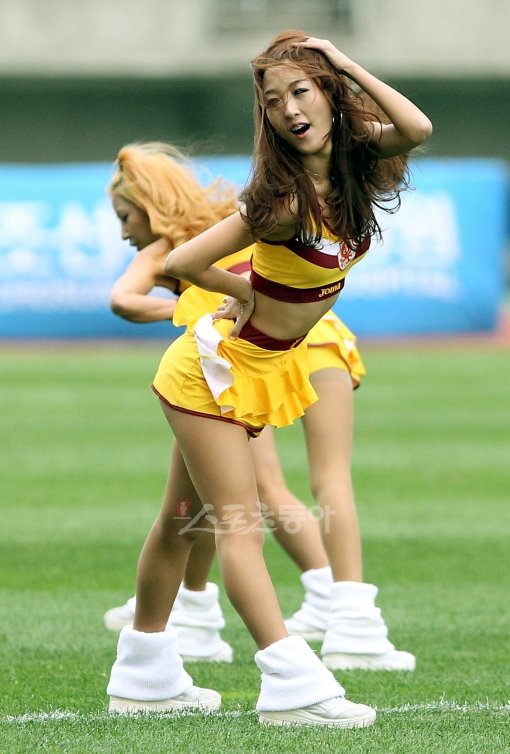 2일 오후 광주 월드컵 경기장에서 열린 K-리그 광주와 울산의 프로축구 경기에서 치어리더가 공연을 펼치고 있다.