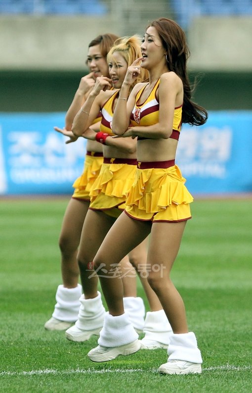 2일 오후 광주 월드컵 경기장에서 열린 K-리그 광주와 울산의 프로축구 경기에서 치어리더가 공연을 펼치고 있다.