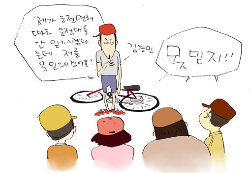 집단가출팀의 막내 김경민이 드디어 자동차 운전면허를 땄다. 그동안 면허가 없는 탓에 지원차량 운전 순번에서 열외 되며 구박깨나 받은 끝에 큰 맘 먹고 면허시험에 도전, 단번에 합격한 것이다. 하지만 문제는 이제 갓 면허를 취득한 왕초보에게 차량 운행을 맡기는 모험을 할 사람이 없다는 점. 이제 면허를 땄으니 믿고 맡겨달라는 김경민과 절대 그럴 수 없다는 대원들 사이에 또 다시 긴장이 흐르고 있다. <삽화=허영만>