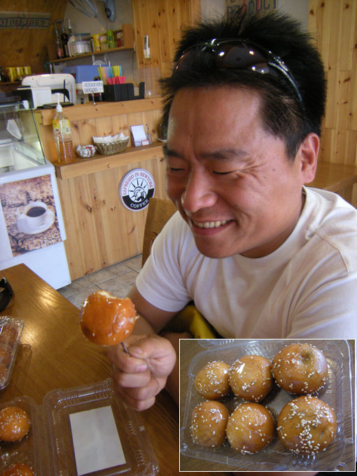 충무김밥과 함께 통영이 자랑하는 또다른 명물 먹거리 통영꿀빵. 팥이 가득 들어있어 라이딩중 간식으로도 최고였다. 통영의 대부분 커피숍은 서양식 도넛이나 쿠키 대신 전통 꿀빵을 팔고 있을만큼 자부심이 대단하다.