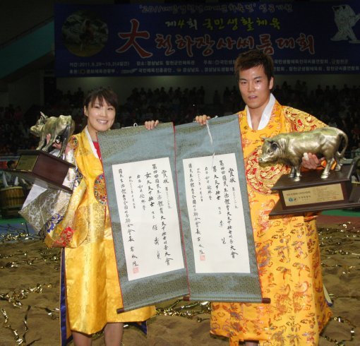 2011년 대(大)천하장사에 이얼(26·경기)과 임수정(26·부산)이 등극했다.전국 16개 시도 700여명 참가 성료